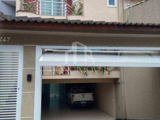 Lindo sobrado com 3 dorms sendo 3 suítes, sendo um dos dorms com closet e banheira, sacadas, sala de estar jantar e cozinha conceito aberto com dispensa. Totalmente mobiliado. Área com Churrasqueira, sótão, porão, 5 vagas ou 6 para carros pequenos. Excelente localização. Estuda permuta por imoveld e menor valor no ABC - Acabamentos: Piso frio, - Características: Churrasqueira, Suíte, Quintal. Quintal, Garagem Ar Livre, Churrasqueira